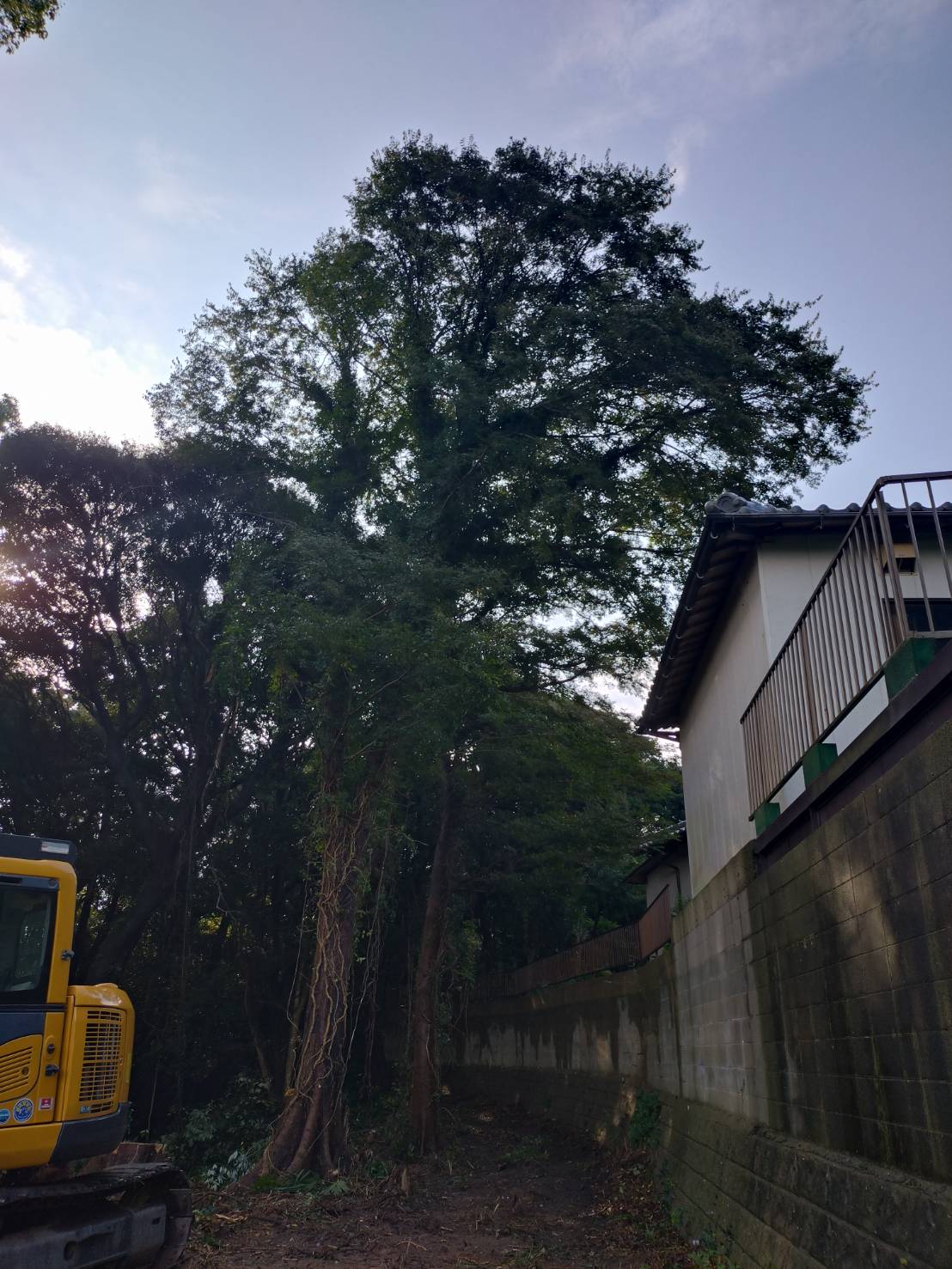 弊社では重機やチェンソーを使い少しづつ枝や幹を伐採し、全て撤去し処分まで行い無事に作業が完了しました。